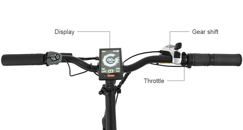 Adjustable, battery-less, backlit color LCD display allows you to see your speed, distance, battery life and pedal assist level, etc. at a glance while riding LCD display with 5 speed pedals assist function, speed indicator, local time, top riding speed, riding distance.